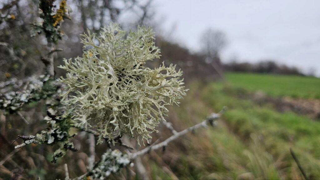 Pour illustrer ce billet, une rose et du lichen photographiés pendant ma balade méridienne.