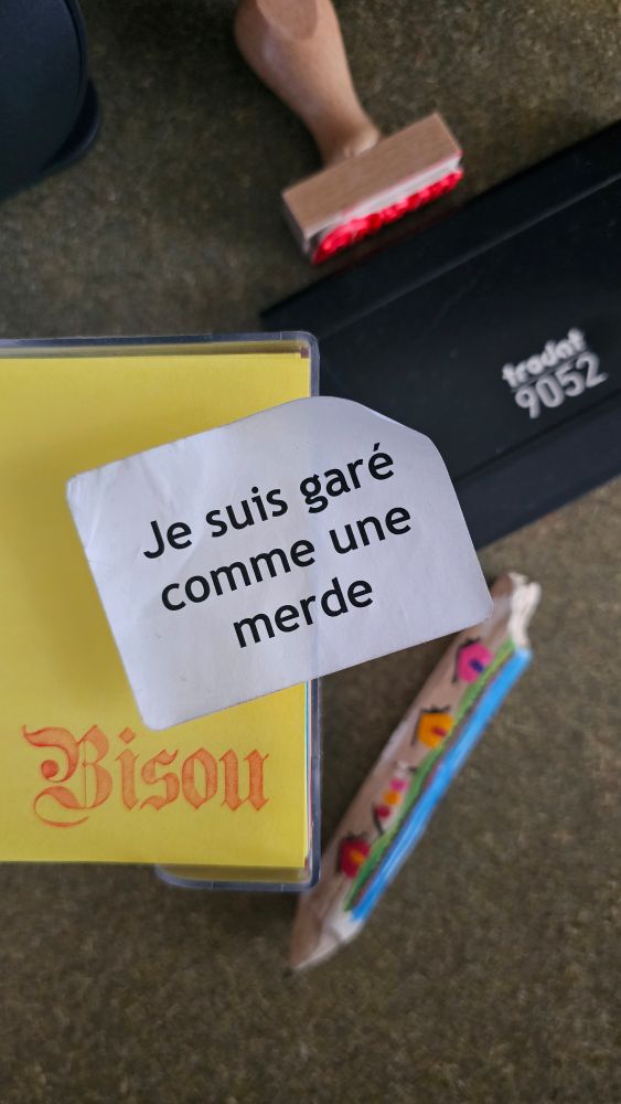 Je signe toutes mes cartes avec ce tampon acheté au Tampographe Sardon à Paris 😉 et ton ami a tellement raison.