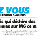 sous le plateau en verre d'une table basse on devine une compression de César, le trophée attribué à Jacques Audiard ; sur la table basse, un verre de vin rouge