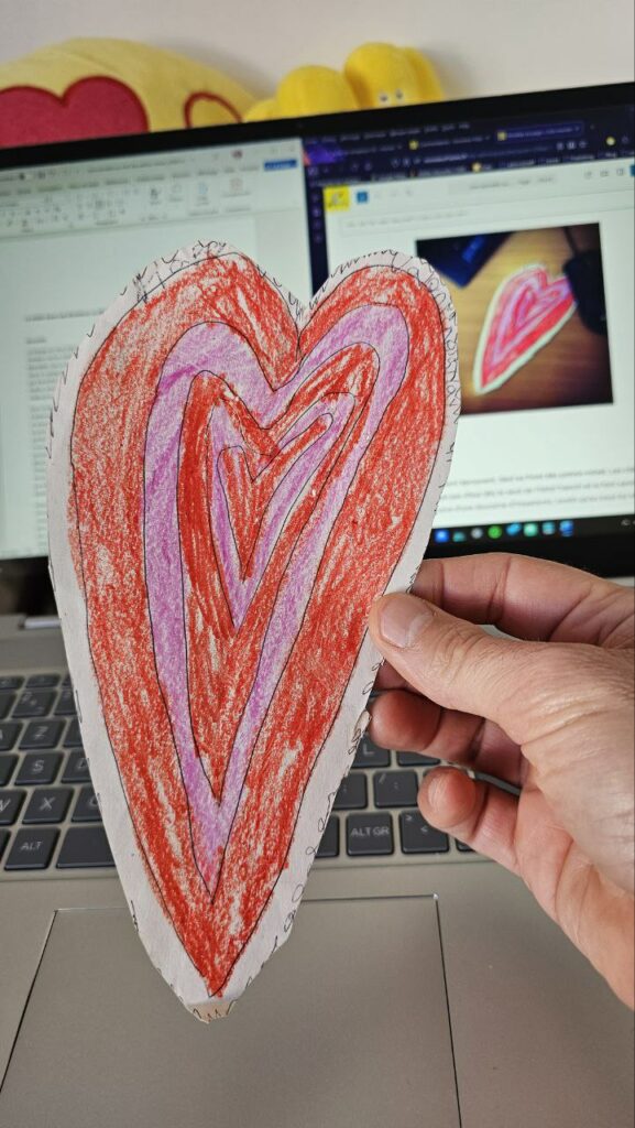 Je capte soudain le regard de la fillette de dix ans dans la file d’attente. Elle et ses parents sont à l’hôtel depuis une petite semaine. D’un geste timide, elle me tend une feuille de papier. Un cœur qu’elle a dessiné et souhaite m’offrir pour la Saint Valentin.